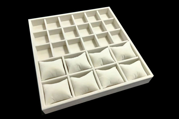 This set of drawer inserts is a smart solution to organize your necklaces, bracelets, watches and sunglasses. These two jewelry trays are also perfect for other accessories that you need to put into your drawer. Below please find the measurement. If you have a different size of drawer, please email us to get an accurate quotation and design.
