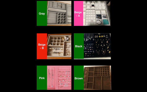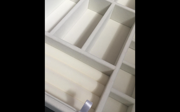 These Jewelry Organizer trays are lined with a velvet fabric that prevent scratches. Made of high quality beige velvet to hold all of your favorite jewelry and accessories in place nicely.